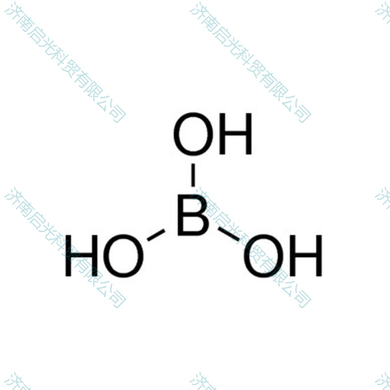 | 化学性质 | 无色透明微带珍珠状光泽的鳞片状结晶或白色至类白色结晶性固体,无气味,味淡酸苦后带甜,有滑腻手感。露置空气中无变化,能随水蒸气挥发,加热至100-105℃时失去一分子水而形成偏硼酸,于104-160℃时长时间加热转变为焦硼酸,更高温度则形成无水物。易溶于沸水、沸乙醇和甘油,溶于水、乙醇、乙醚。pH 3.8-4.8(33g/L,H2O,20℃)。熔点 160-185℃(dec.)。密度 ρ(20)1.435g/mL。  |
